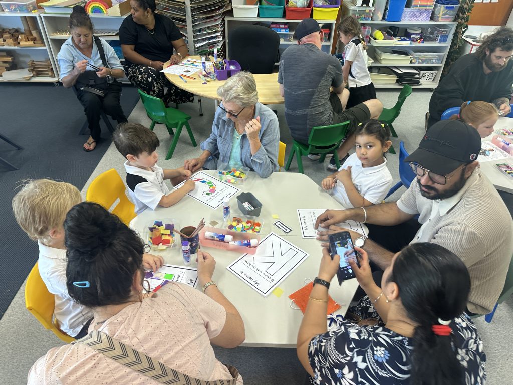 14 parents/families came along and did some fun activities with their kindergarten child. They made a parachute with a pipe cleaner person attached because the Kindergarten students were reading ‘Parachute’ by Danny Parker and Matt Otley in their Pre-lit lesson.
